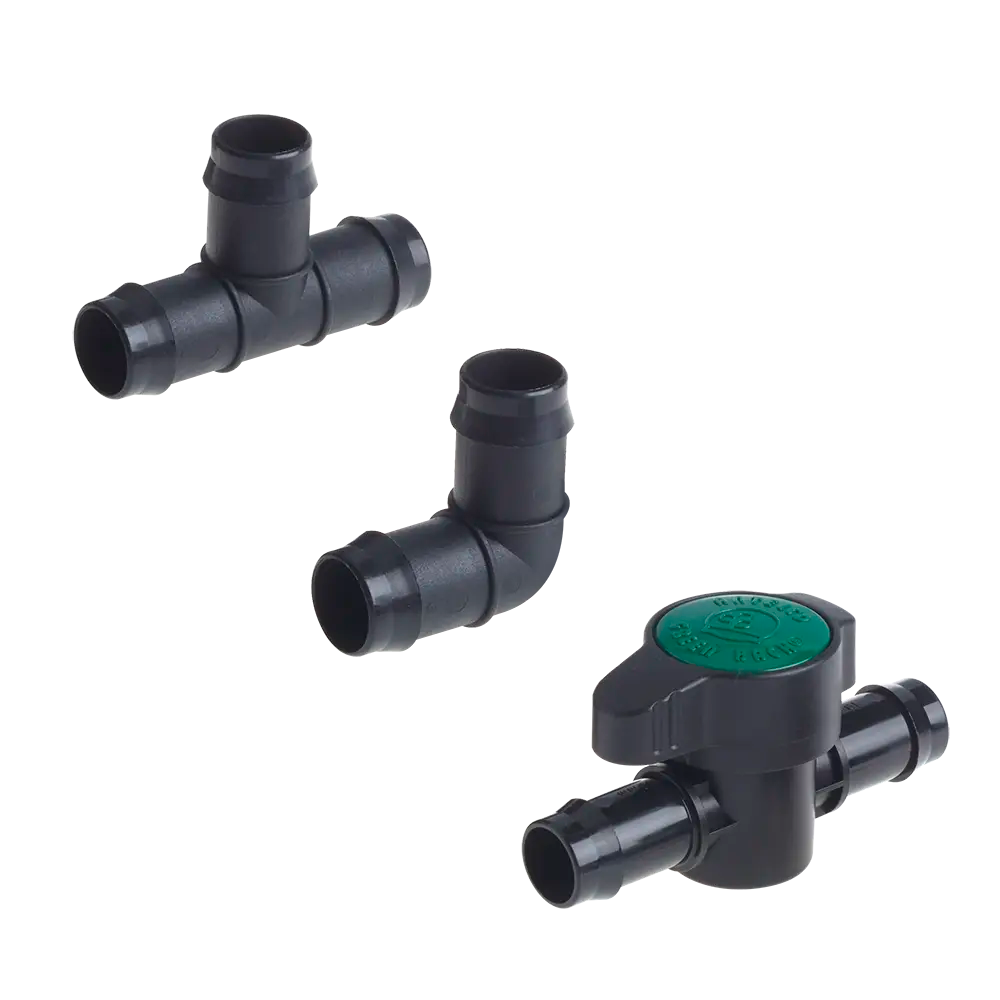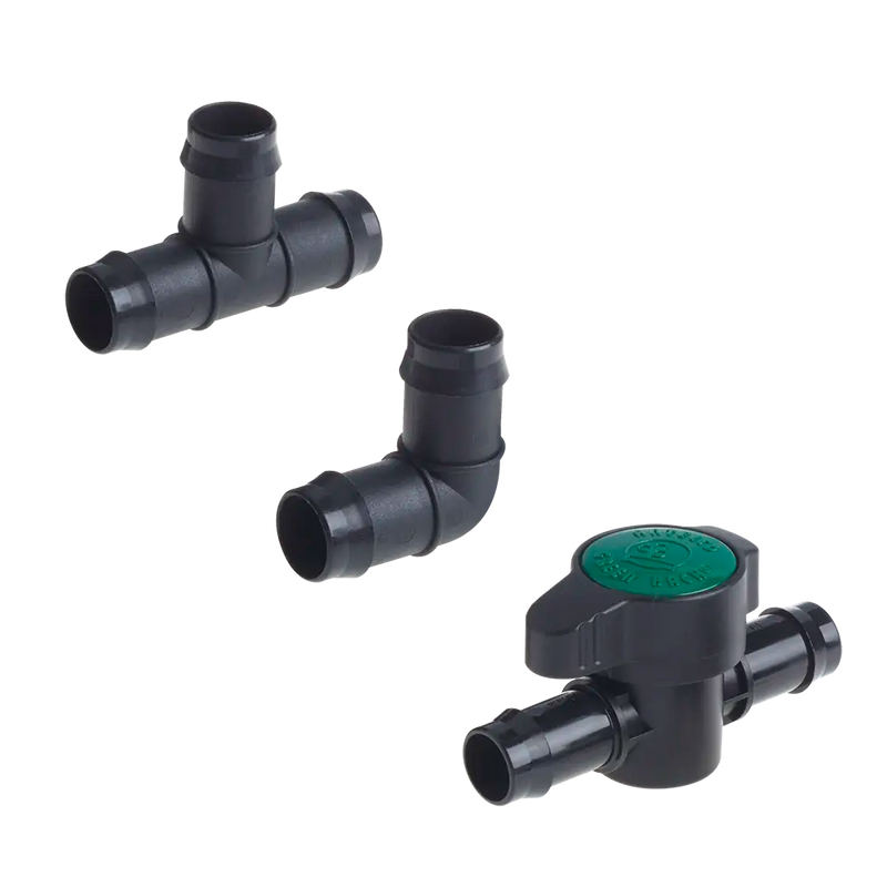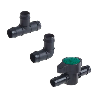 All connections are barbed, for a simple yet secure join. It’s just what you need to build an irrigation system from scratch.