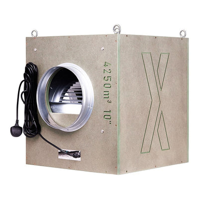 The housing is made from thick, precision-cut, moisture-resistant green MDF panels. This is ideal in humid grow rooms, MDF lasts longer than other wood, ensuring your fans last. Since the boxes are precision cut, boxes line up perfectly for storage. The insulating foam is fire-resistant, too.