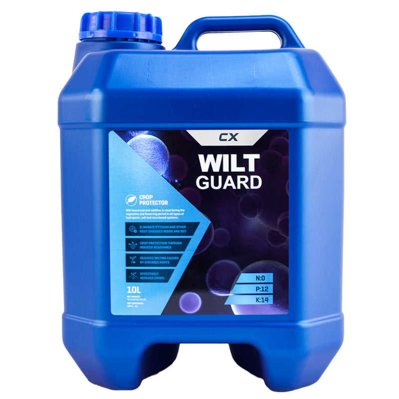 CX Horticulture’s Wilt Guard is a plant protector designed to strengthen resistance against root-borne diseases, reducing the likelihood of wilting and supporting overall plant health. Ideal for hydroponic and soil-based systems, Wilt Guard promotes resilience by forming a barrier against pathogens and enhancing the plant’s natural defenses. With regular use, plants become more vigorous and less susceptible to environmental stressors.