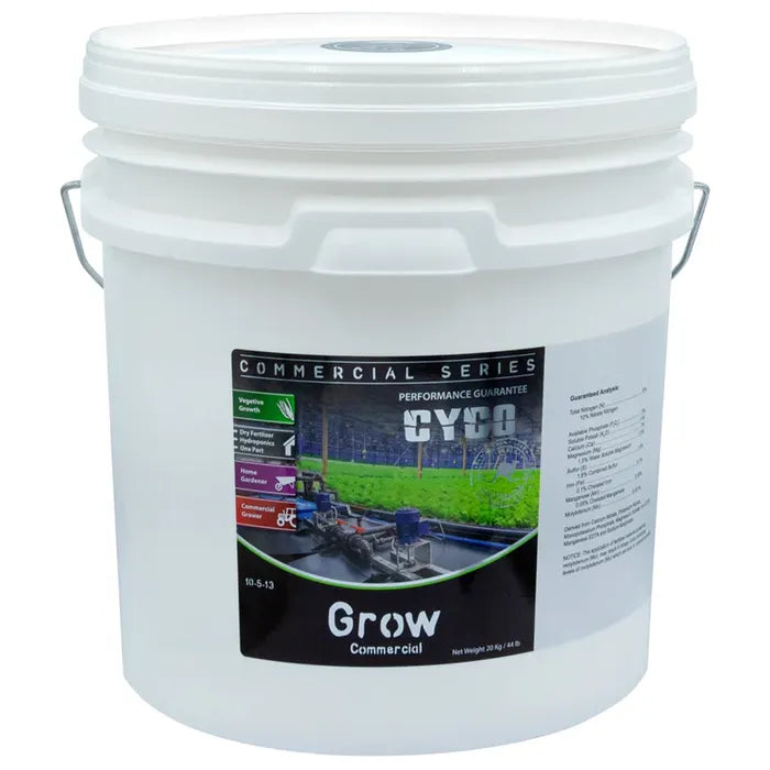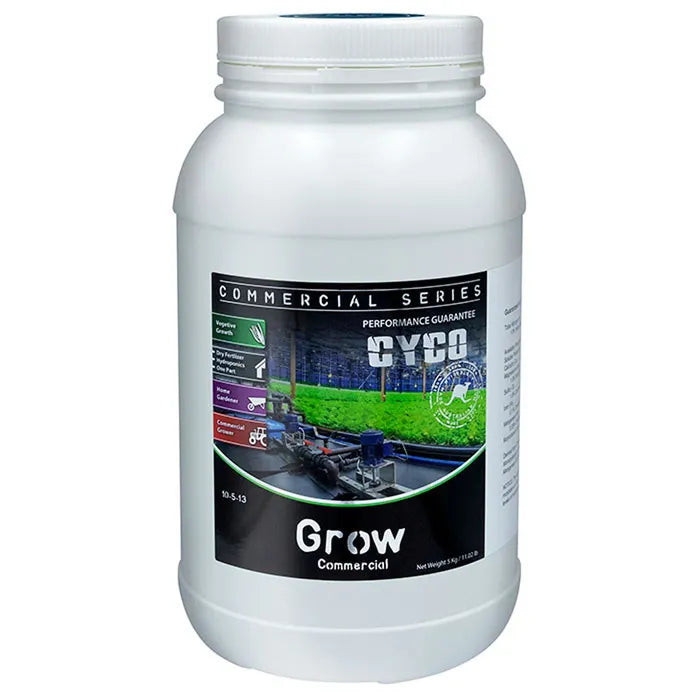 Cyco Commercial Series Grow is a great powdered nutrient for all applications, including drip systems, DWC, hydroponics, rockwool-based set-ups, coco and soil.