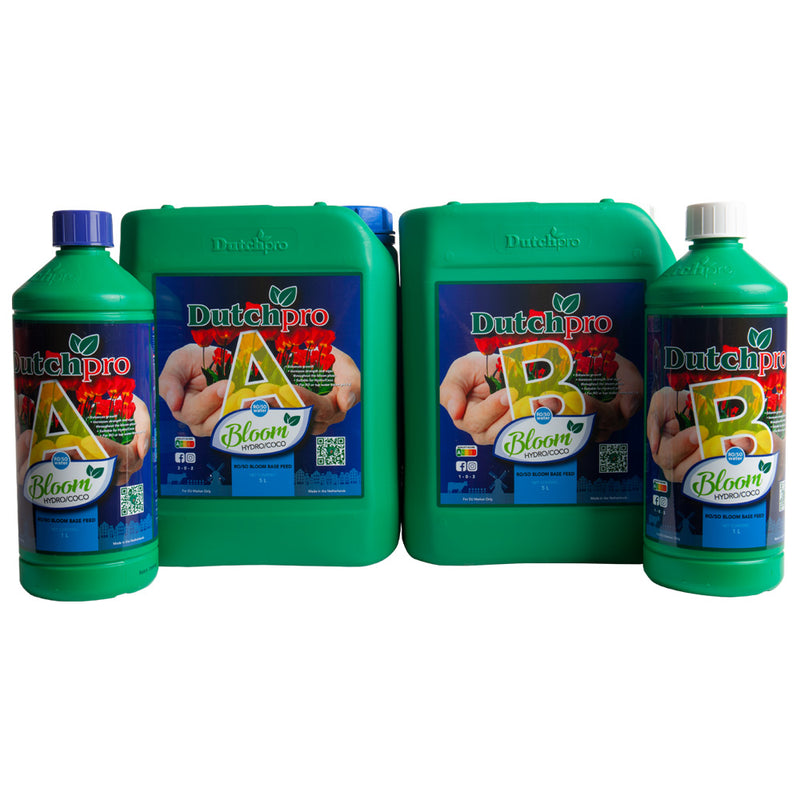 Dutch Pro is rapidly gaining popularity as one of the top choices for plant nutrients in today's market. Growers worldwide are discovering the secrets of professional Dutch growers firsthand, leading to Dutch Pro's well-deserved recognition beyond the borders of Holland. With a remarkable three decades of expertise in crafting superior plant nutrients, Dutch Pro is now making its mark in various countries. The Dutch Pro Original Bloom Hydro/Coco A&B for Soft Water is a two-part nutrient specifically formulated for use in all hydroponic systems and for plants in the bloom/fruiting cycle when grown in coco and soft water areas. Dutch Pro is renowned for producing exceptionally high-quality and abundant plants, and their commitment to investing in the product's quality rather than extravagant packaging ensures excellent value for money. It's no surprise that Dutch Pro is becoming increasingly popular!