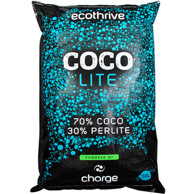 Ecothrive Coco Lite 70/30 Mix is a premium blend of 70% RHP-certified, buffered coco coir and 30% perlite, pre-mixed with 1% Ecothrive Charge. This combination offers superior aeration, drainage, and a biological boost to support vigorous plant growth.