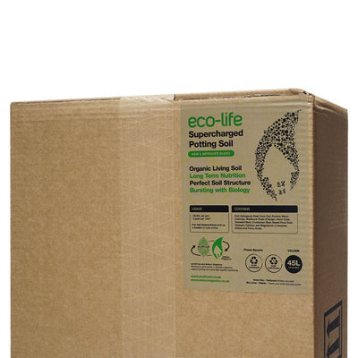Loved by a legion of growers, Ecothrive Eco-Life Soil returns at last and it's better than ever! With a new peat-coco blend, high-grade vermicompost base and substitution of perlite for pumice, this fully organic and 100% living soil has been thoughtfully updated for improved performance and usability. What's more, the product now comes packaged in a cardboard box containing a thin LDPE liner to minimise plastic waste and provides 45L – an extra 5L compared to the previous version!