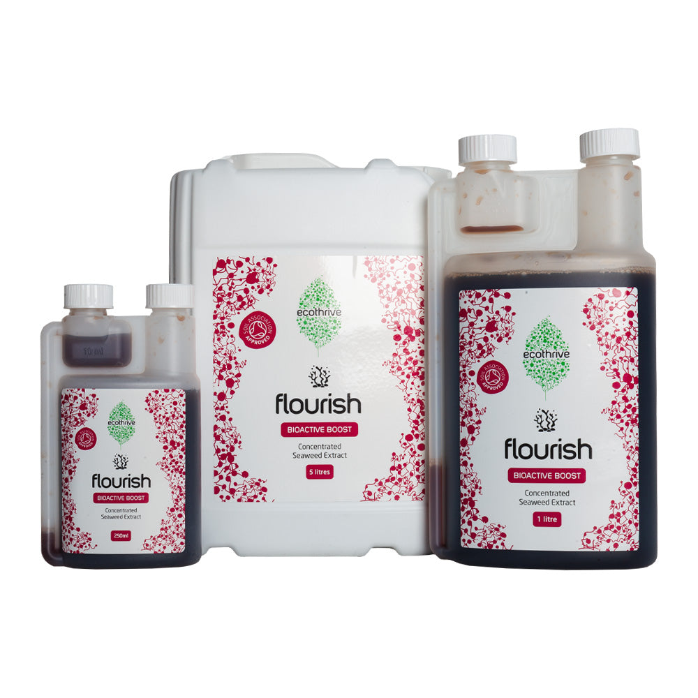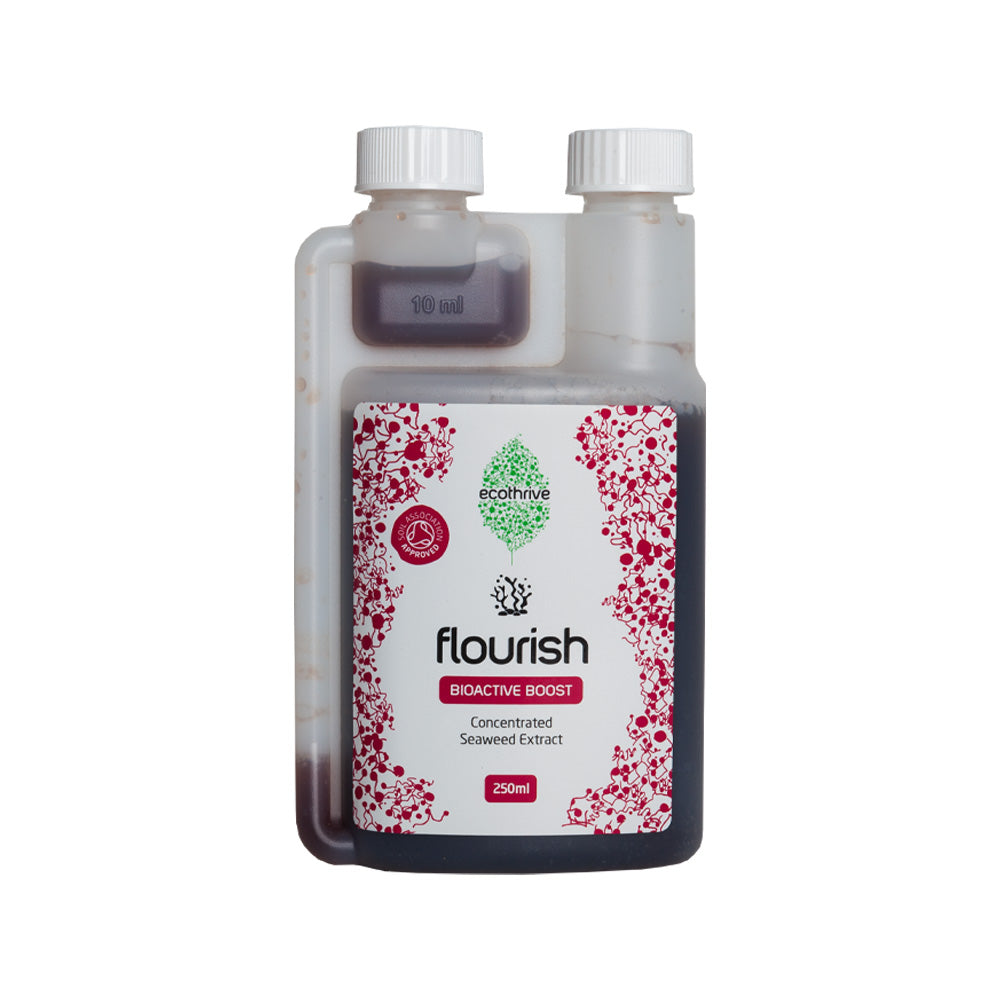 Ecothrive Flourish is a seaweed-based anti-stress tonic and booster that's loaded with powerful biostimulants. These stimulants work to enhance plant health and boost growth at every stage of development.