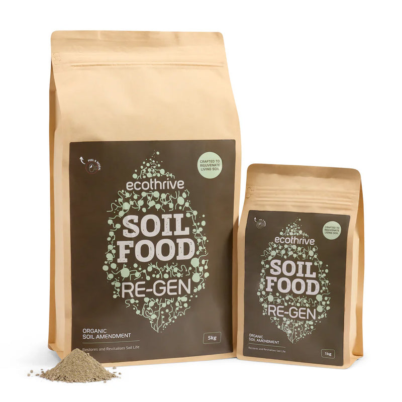 The Soil Food range is a premium line of organic soil amendments, expertly crafted for Ecothrive Living Soil. This powerful system includes Soil Food Grow, Soil Food Bloom, and Soil Food Re-Gen, each designed to support plants at key growth stages while promoting long-term soil health and sustainability.
