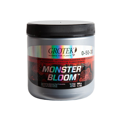 Monster Bloom is a globally recognized industry standard and a top-selling bloom enhancer for good reason. Packed with essential nutrients, it helps plants maximize their yield by providing a powerful boost from floral initiation to the development of the largest possible flowers and fruit. Begin application when buds start forming and continue with every fertilization during the blooming cycle. Discontinue use 1-2 weeks before harvest. Avoid using other PK products simultaneously with Monster Bloom to prevent nutrient burn.