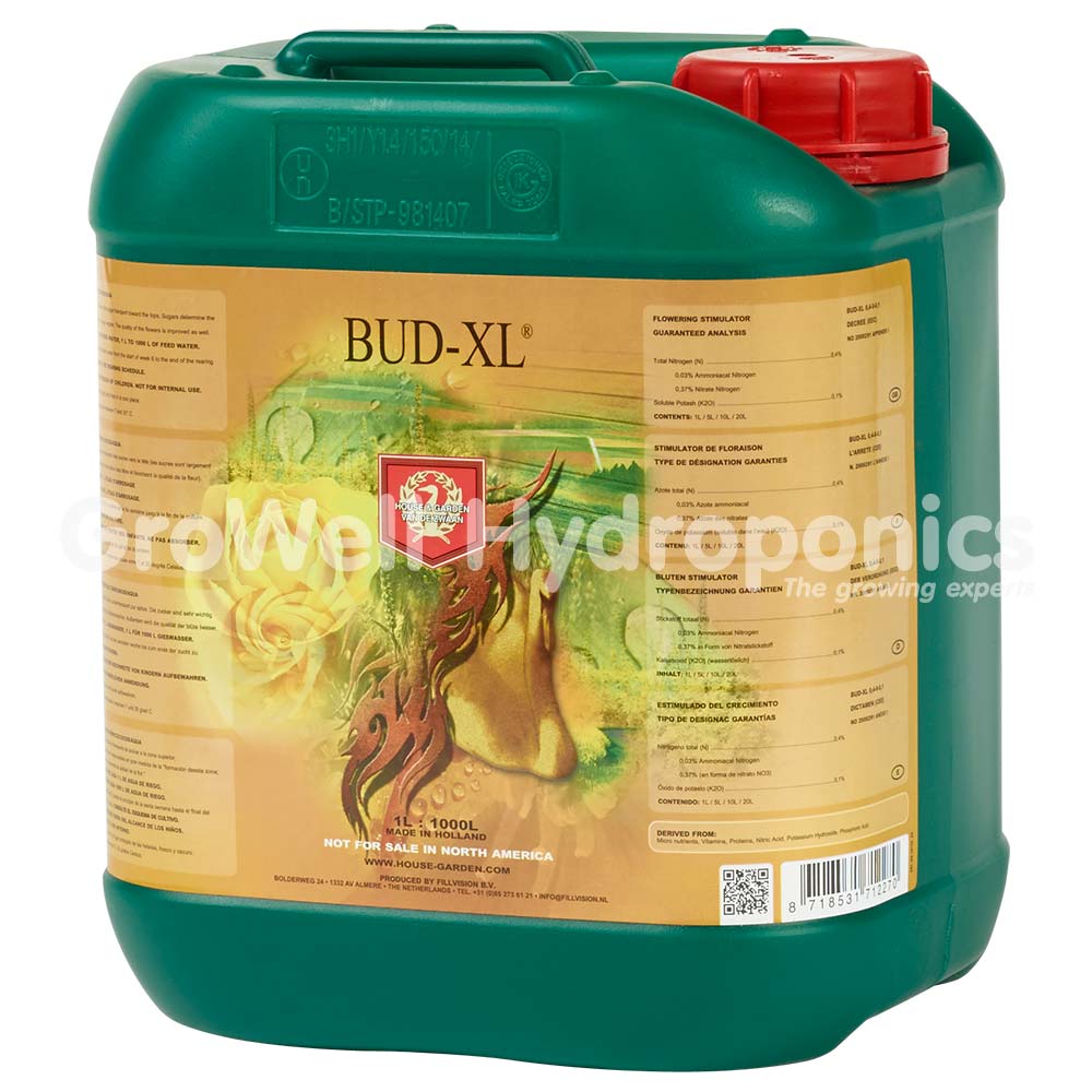 Maximising flower/fruit production and quality is the primary goal of many indoor growers - Bud-XL from House & Garden can help achieve significant increases in both. By stimulating your plant into transferring sugar reserves into its fruits and flowers, Bud-XL enhances your plants normal flowering response leading to considerable increases in yield and quality. Designed for use with the rest of the House & Garden range.