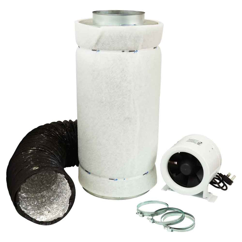We’ve paired up the 6 available high pressure Mammoth Juiced EC Fans with compatible CarboAir 50 Carbon Filters – offering top class air filtration capabilities – alongside excellent flexible ducting and secure duct clips.