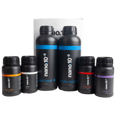 The Nano.10⁻⁹ Hydro Starter Pack is designed for growers seeking to maximize plant health and performance with cutting-edge nanotechnology. This bundle includes Nano Nutrients' Hydro Base A+B solutions, formulated to optimize nutrient delivery in hydroponic systems. The Nano.10⁻⁹ nutrients use ultra-small nanoparticles to enhance nutrient uptake efficiency, ensuring plants receive the essential minerals needed for robust growth, strong root systems, and vibrant yields. Suitable for a range of hydroponic setups, this starter pack is perfect for both beginner and experienced growers looking to elevate their hydroponic growing results.