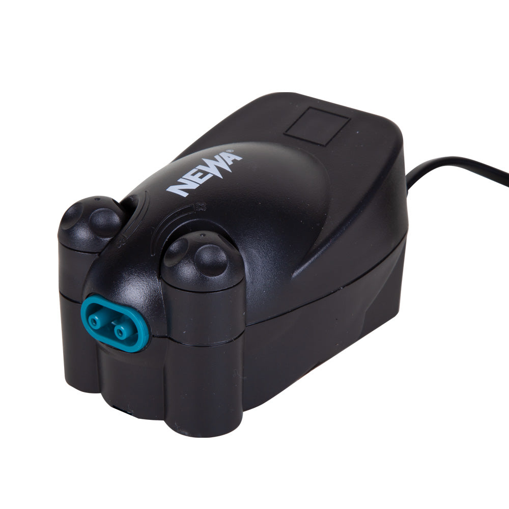 The Newair range of air pumps is brilliantly engineered and stylishly designed for pumping air through airline tubing into submerged air stones, or for operating Aquafarm and Waterfarm systems. Air is drawn in from the underside of the unit, and an oscillating diaphragm pushes the air through the front output nozzle. The airflow can be easily adjusted by twisting the knobs on the front of the unit. Despite its compact size, the pump produces steady and strong air pressure. The entering air passes through a multi-level muffler to minimize noise, and the unit's special rubber feet absorb a significant amount of vibration. As a result, the pumps operate with very little noise and consume minimal power.