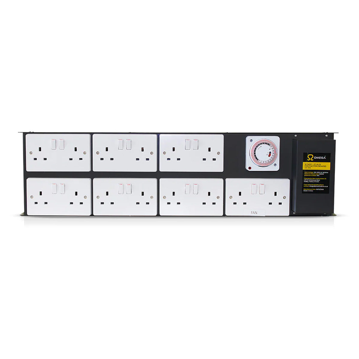 They let you switch 12 or 16 grow lights on and off without tripping breakers or risking timer failure, and they come with 2 aux sockets for fans, heaters, or other climate gear.