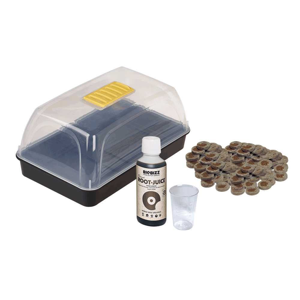 This is a no-nonsense line-up of established products that will encourage your young plants to begin life with a bang! It includes Biobizz Root Juice, a Medium Unheated Stewart Propagator, Jiffy Pellets and a 10ml syringe.