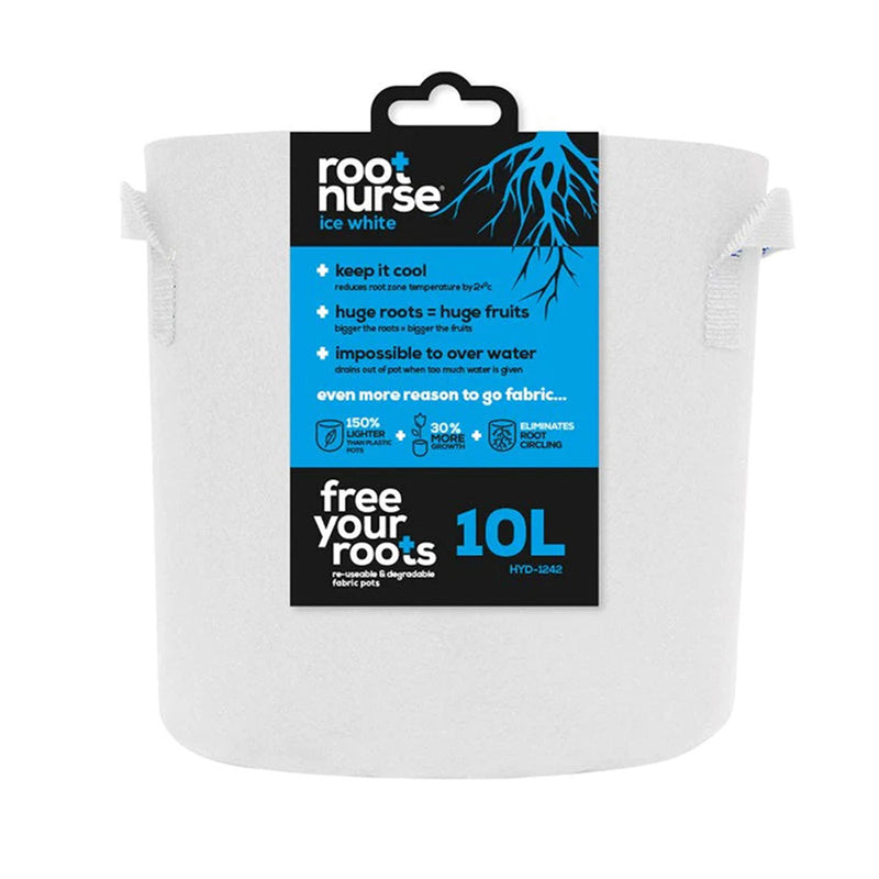 Root Nurse Ice White Fabric Pots are a great eco-friendly alternative to standard plastic pots and ideal for any style of growing in a user’s hydroponic setup.