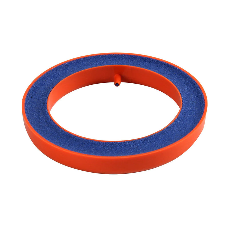 Each air stone features an inlet nodule inside the ring for connection to an air pump via an airline. When connected, air is pumped through the many pores in the stone. Submerged in water or nutrient solution, the air stone releases numerous small bubbles, creating movement and keeping the solution well-mixed. This movement at the surface significantly increases the amount of dissolved oxygen.
