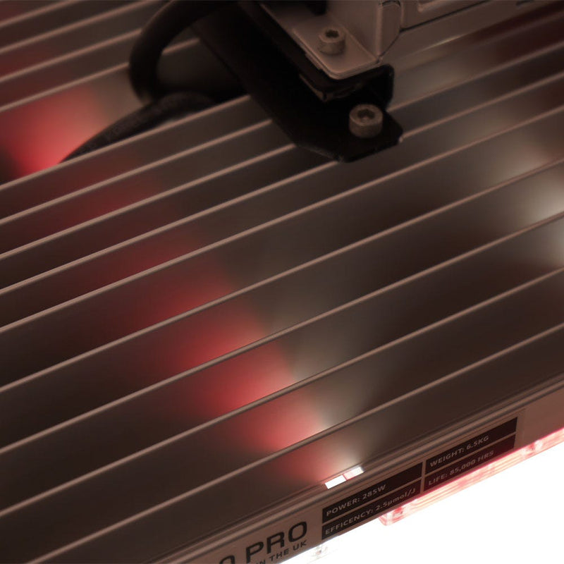 At only 285W (standard Slimline model) / 300W (Mesh model), the highly efficient unit will help you keep your electricity costs and heat output to a minimum – the latter of which makes it an absolute godsend in the summer! And any heat the Telos 10 Pro does produce is via convection (i.e. it rises up), which happens to be much easier to remove with your fan(s) than the radiant heat produced by HPS lights (directed down and over plants).