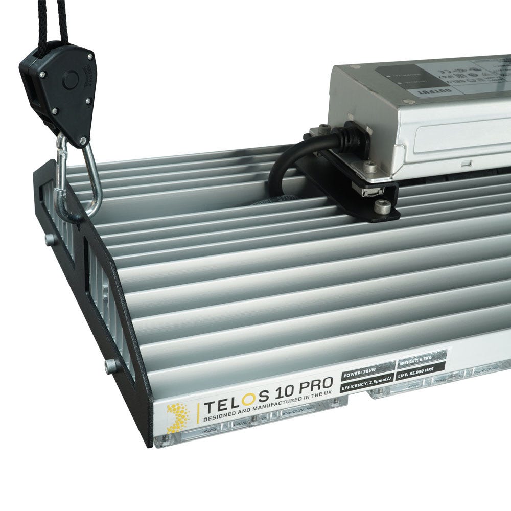 Telos LED Grow Lights are not supplied with hanging equipment – we recommend using Rope Ratchets.