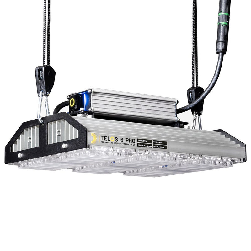 Telos LED Grow Lights are not supplied with hanging equipment – we recommend using Rope Ratchets.
