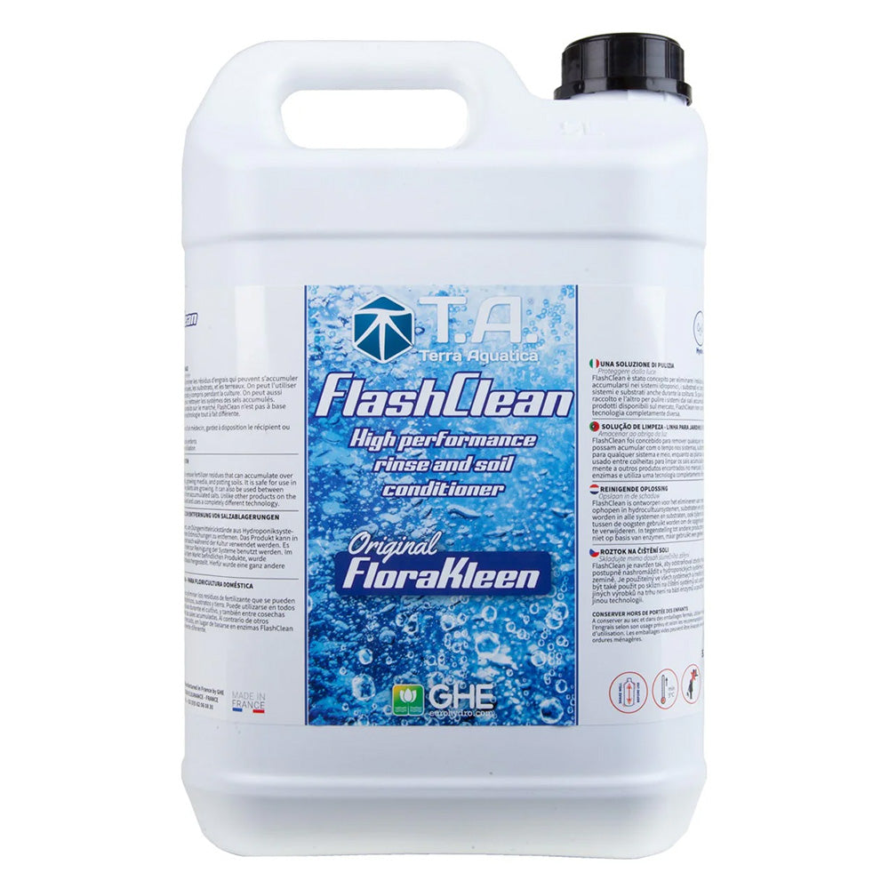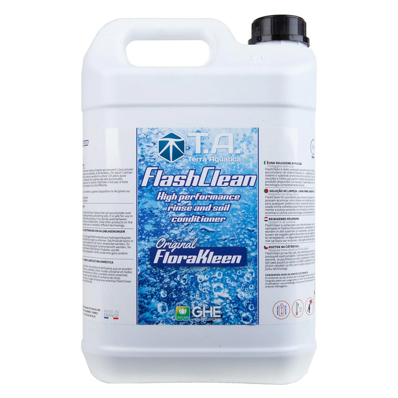 Terra Aquatica FlashClean effectively dissolves mineral precipitates, deposits, and residues from any grow medium and system, ensuring optimal performance. This reduces plant stress and minimizes the risk of nutrient lockouts. Unlike many other cleaning products, FlashClean does not rely on enzymes; it uses a unique technology to achieve its goals. Additionally, FlashClean can be used as a flushing agent towards the end of a grow cycle, helping clear out nutrients and encouraging the plant to transport sugars to its flowers and fruits.