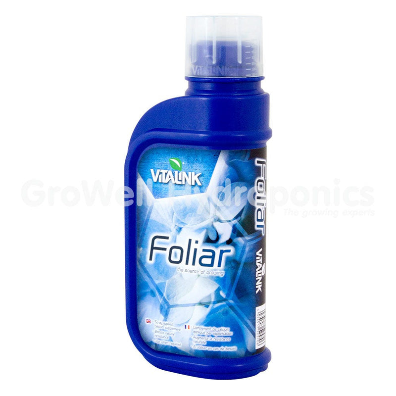 VitaLink Foliar increases plant sugar levels to improve overall fruiting and flowering performance, resulting in much sweeter tasting crops. It contains a highly beneficial mix of sea kelp, humates and chelated calcium, which is easily administered to plants through spray application and quickly absorbed via their leaves. Sea kelp represents a rich source of many vital elements for plants, and the overall mix of amino acids and minerals enhances the uptake of the feed. Use this stimulant and ultimately you can expect to get greater levels of lush, green and healthy foliage leading to faster growth rates and better developed plants. Works especially well in conjunction with the rest of the VitaLink range. Dilution rate: 100ml per litre as a foliar spray.