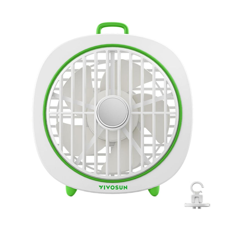 - Clip the fan securely to a tent pole or shelf