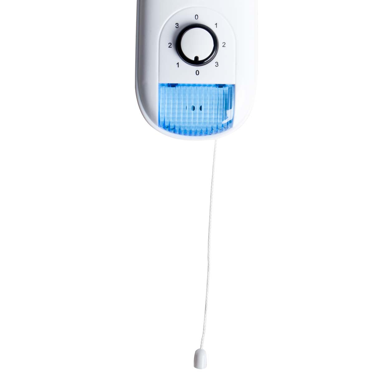 It comes with a pull-chord to switch it on and off and three speed settings. You can also use it with a timer to set on/off times if needs be.